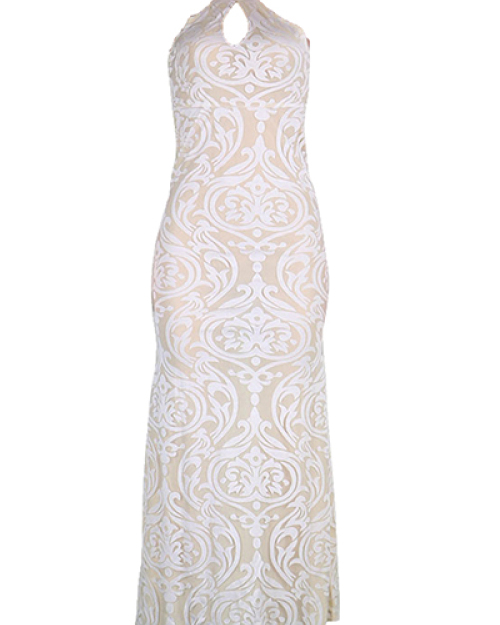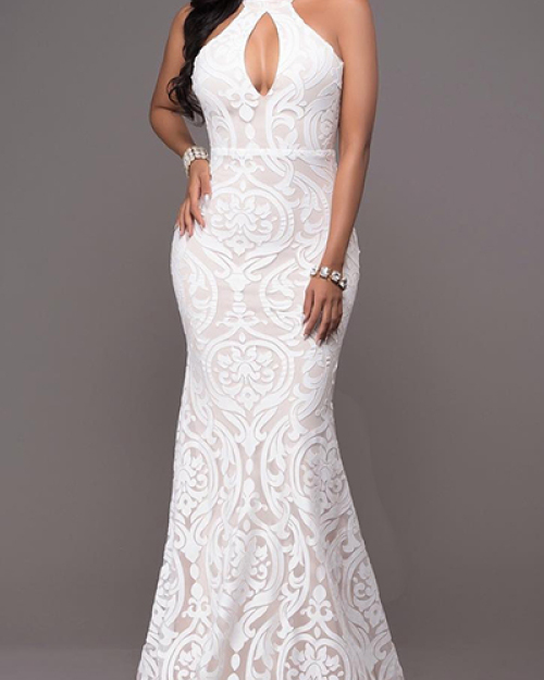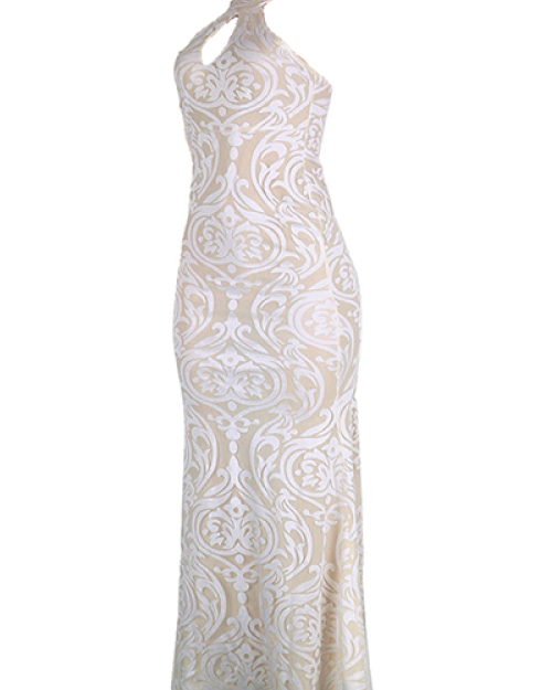 Sexy Round Neck Sleeveless Backless White Bud Silk Floor length Dress