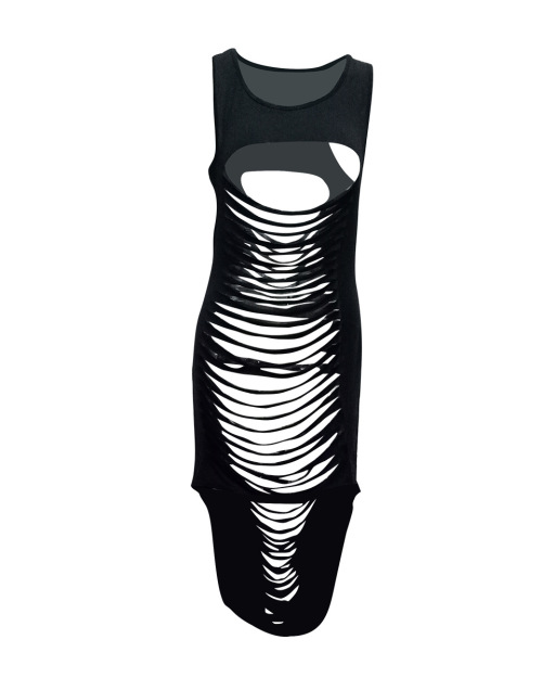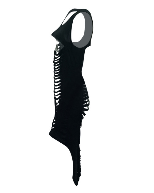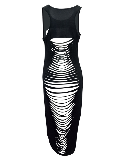 Sexy Round Neck Sleeveless Hollow-out Black Milk Fiber Sheath Ankle Length Dress(Non Positioning Printing)