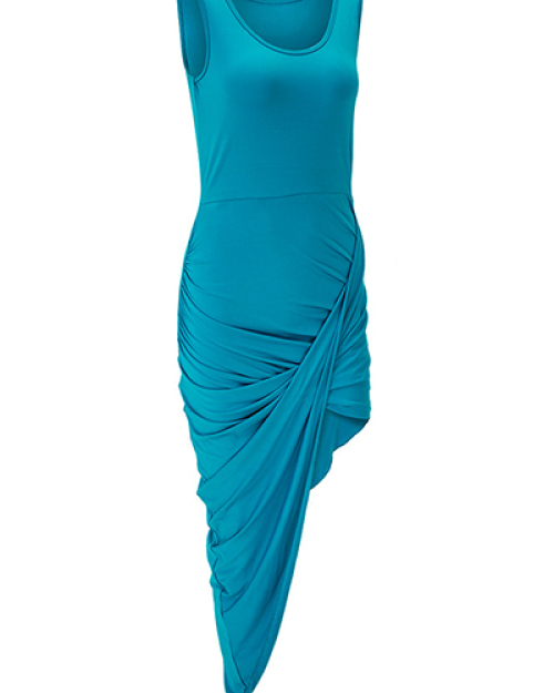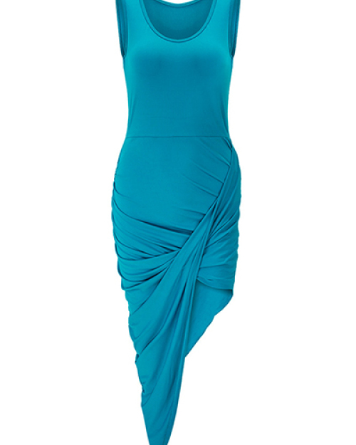 Sexy Round Neck Sleeveless Pleated Asymmetrical Qmilch Ankle Length Dress