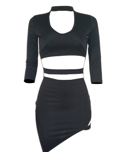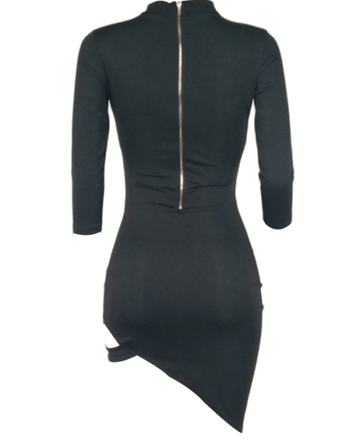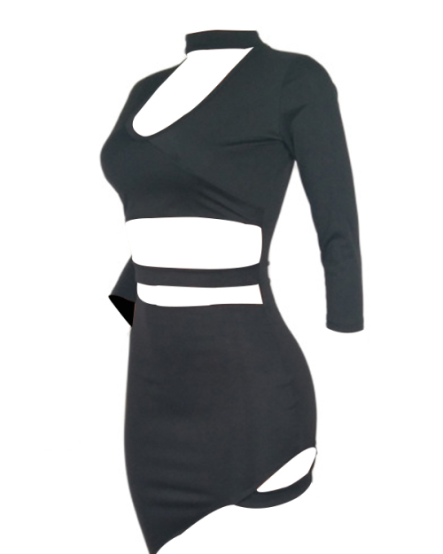 Sexy Turtleneck Hollow-out Black Polyester Mini Dress