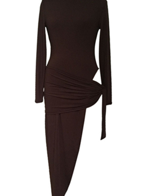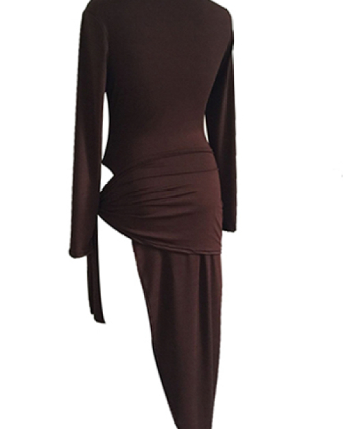 Sexy Turtleneck Long Sleeves High Split Brown Cotton Knee Length Dress
