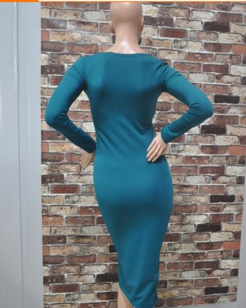 Sexy V Neck Long Sleeves Front Split White Cotton Blend Sheath Knee Length Dress