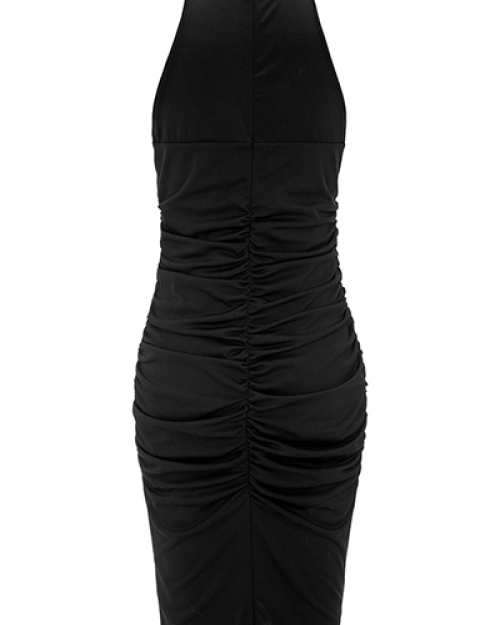 Sexy V Neck Sleeveless Drape Design Black Healthy Fabric Sheath Knee Length Dress