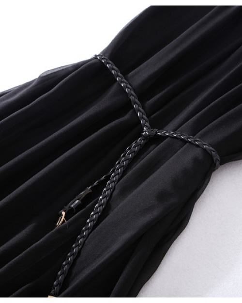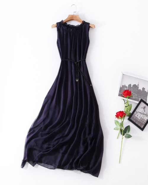 Sleeveless silk summer boutique dress belted waist train loose MIDI skirt #95046