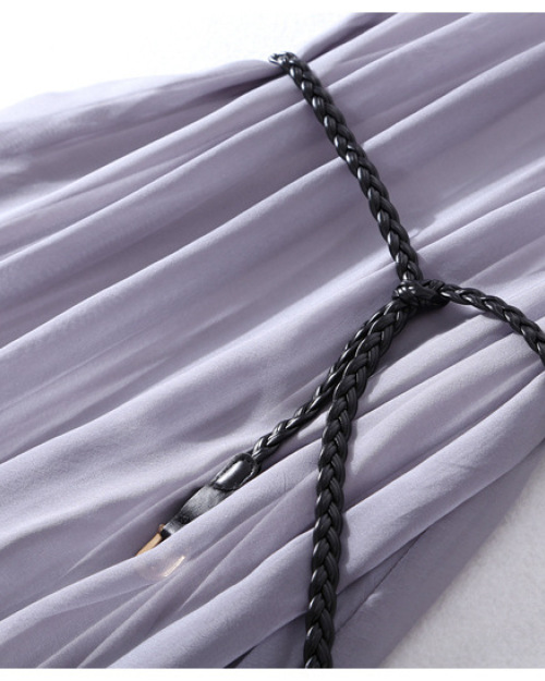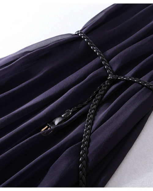 Sleeveless silk summer boutique dress belted waist train loose MIDI skirt #95049