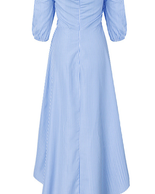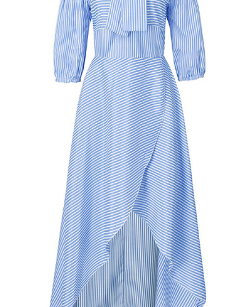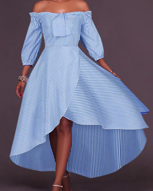 Stylish Dew Shoulder Asymmetrical Blue Polyester Ankle Length Dress
