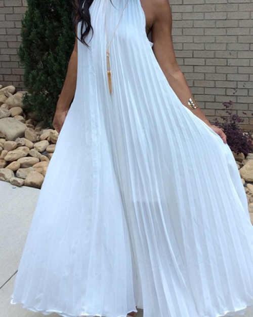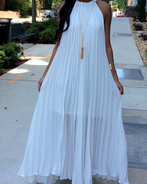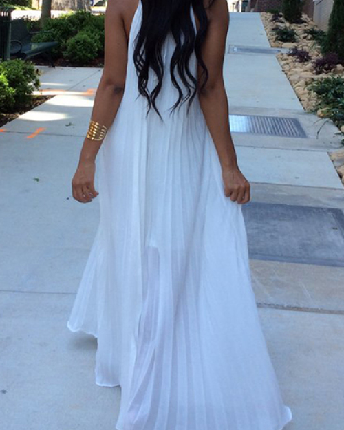 Stylish Round Neck Dew Shoulder Sleeveless White Chiffon Floor Length Dress(Without Accessories)