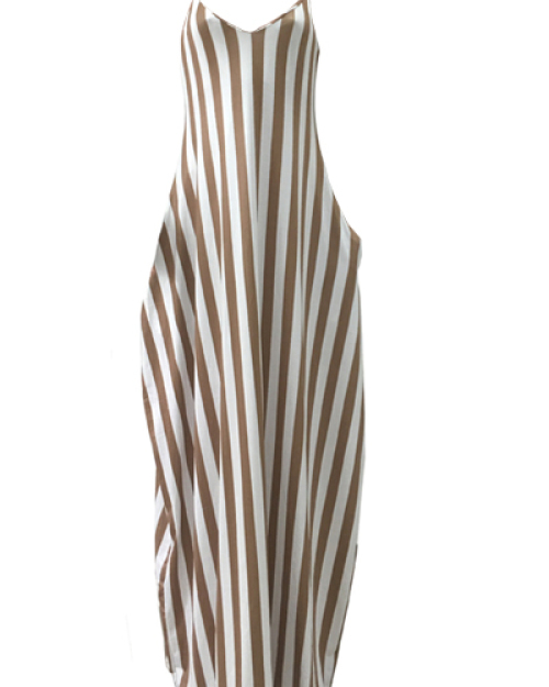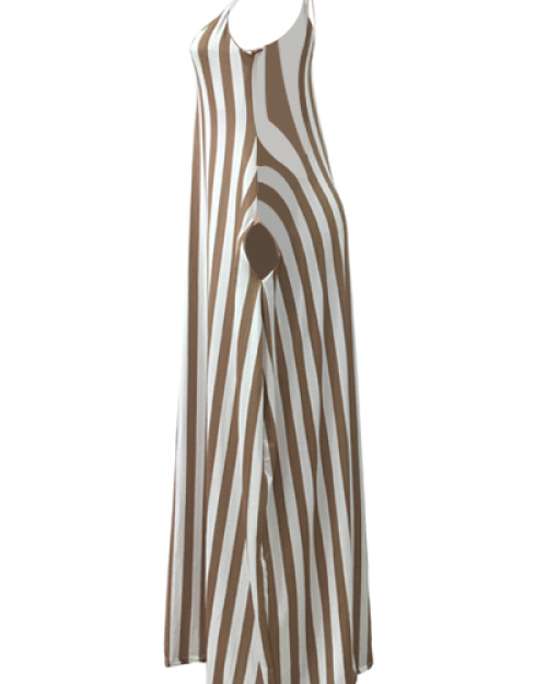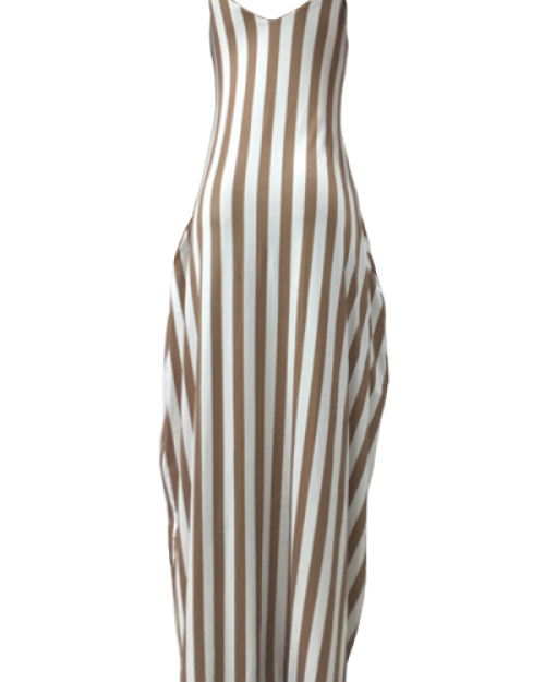 Stylish V Neck Sleeveless Striped Blending Ankle Length Dress