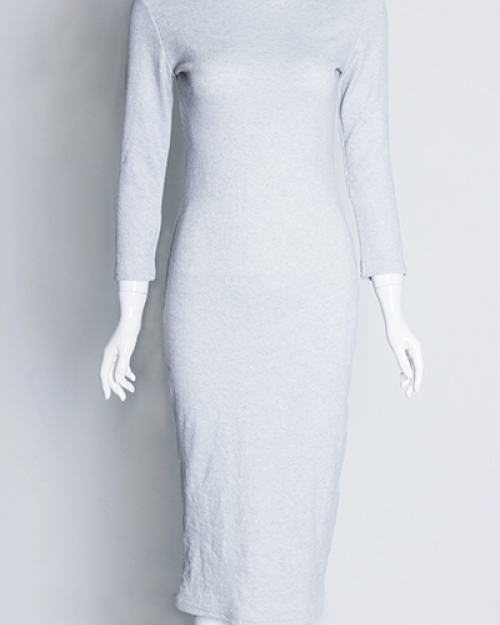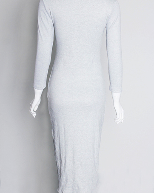 Trendy Round Collar Long Sleeves Grey Polyester Sheath Knee Length Dress