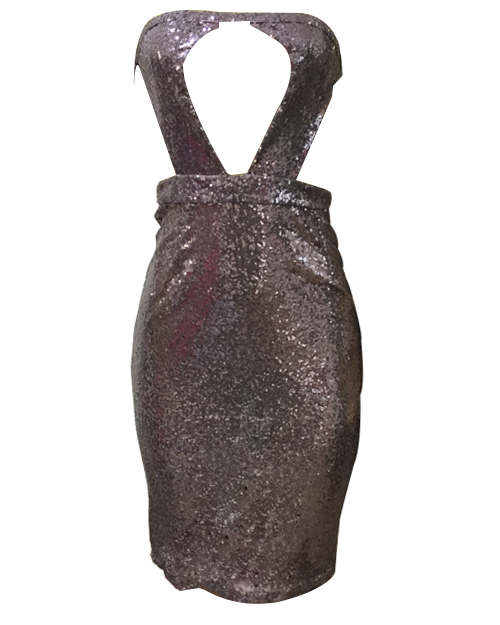Vintage Bateau Neck Sequins Decoration Hollow-out Purple Polyester Mid Calf Dress