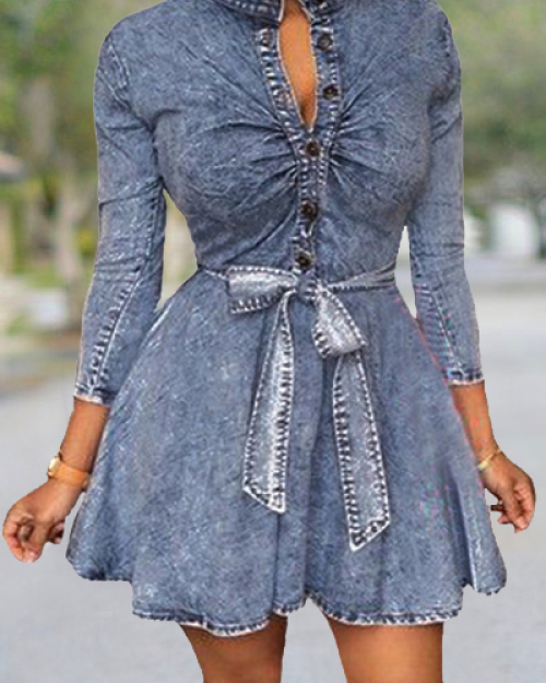Women Sexy Long Sleeve Bodycon Club Denim Jean Mini Dress