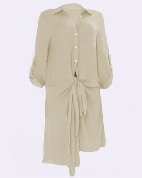 Euramerican Asymmetrical Apricot Polyester Knee Length Dress