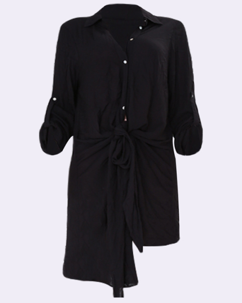 Euramerican Asymmetrical Black Polyester Knee Length Dress