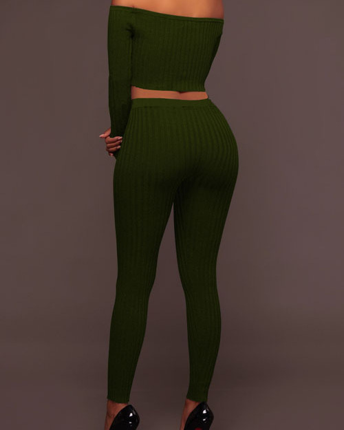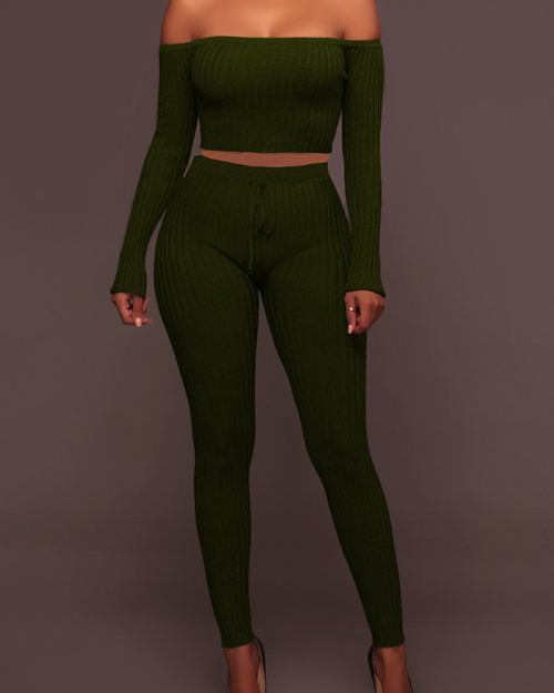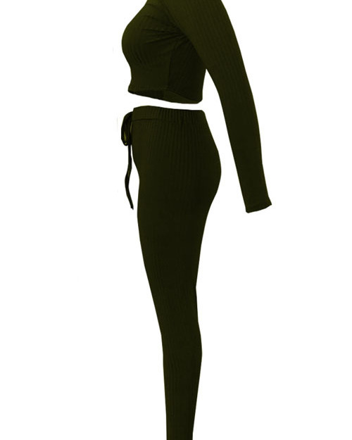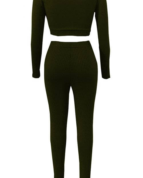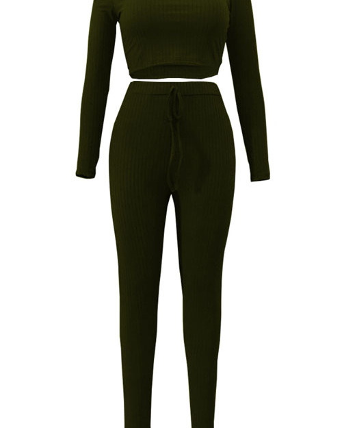 Euramerican Dew Shoulder Army Green Cotton Two-piece Pants Set