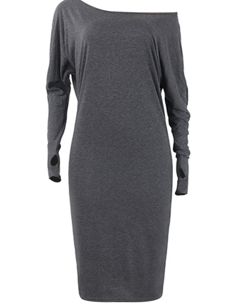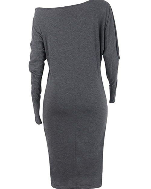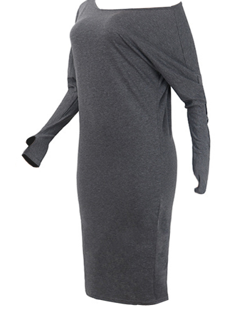 Euramerican Dew Shoulder Grey Cotton Blend Sheath Mid Calf Dress