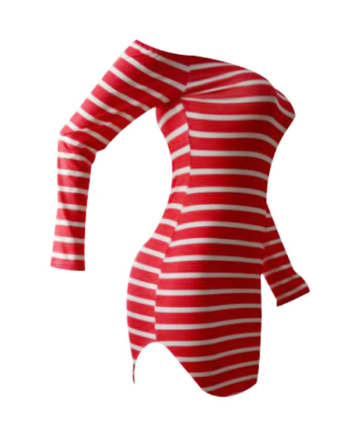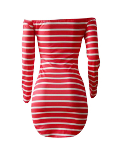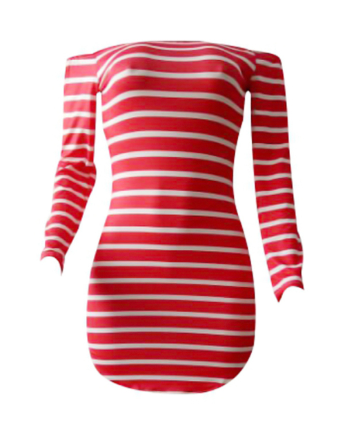 Euramerican Dew Shoulder Striped Red-white Milk Fiber Sheath Mini Dress