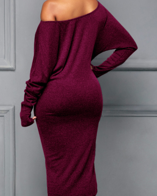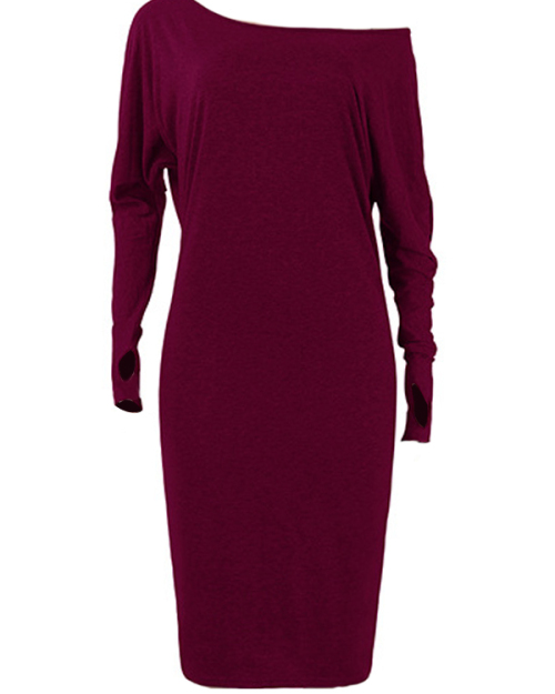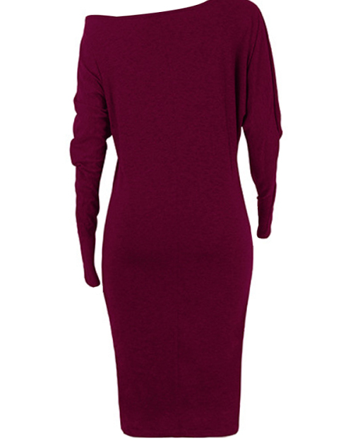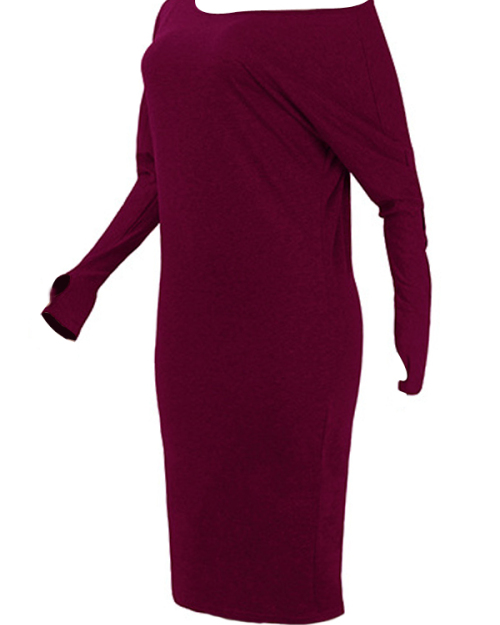 Euramerican Dew Shoulder Wine Red Cotton Blend Sheath Mid Calf Dress
