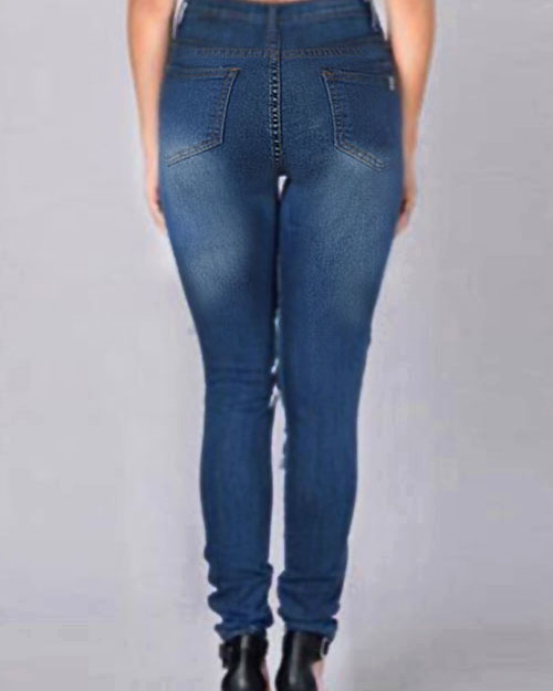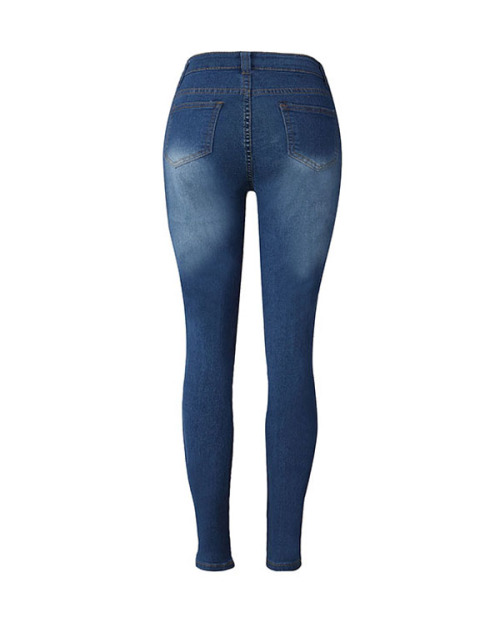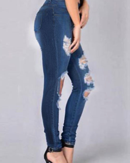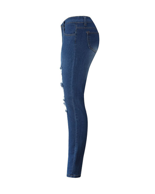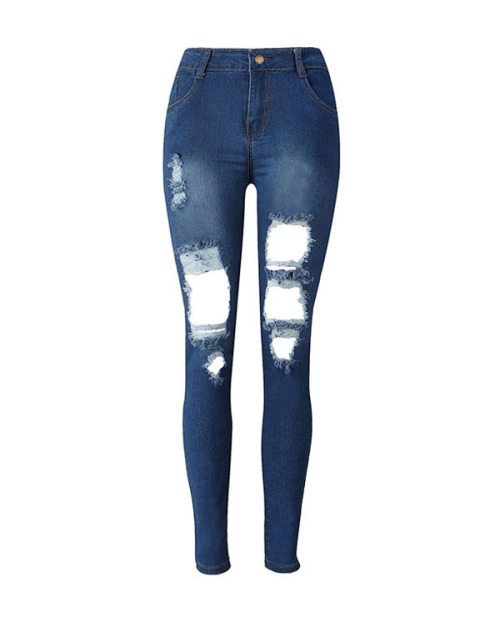 Euramerican High Waist Broken Holes Deep Blue Denim Pants