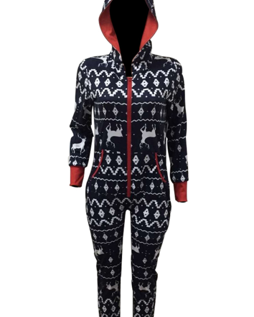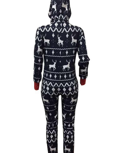 Euramerican Hooded Collar Christmas Printed Designs Polyester One-piece Jumpsuits