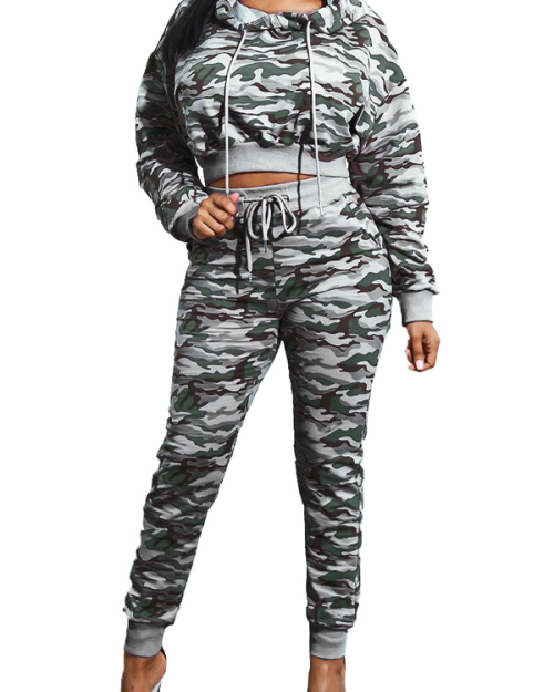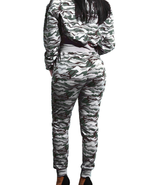 Euramerican Hooded Collar Printed Patchwork Grey Qmilch Two-piece Pants Set