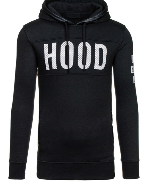 Euramerican Letters Printing Black Cotton Blends Hoodie