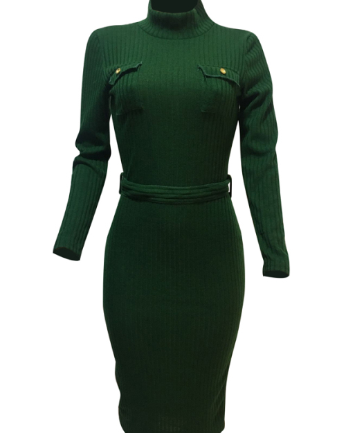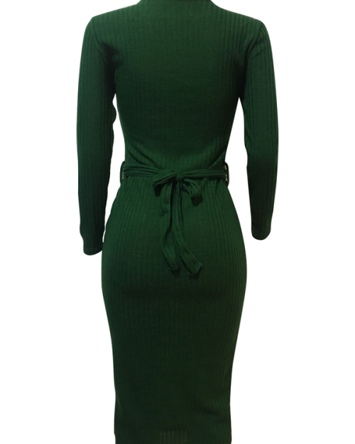 Euramerican Long Sleeves Green Polyester Sheath Mid Calf Dress