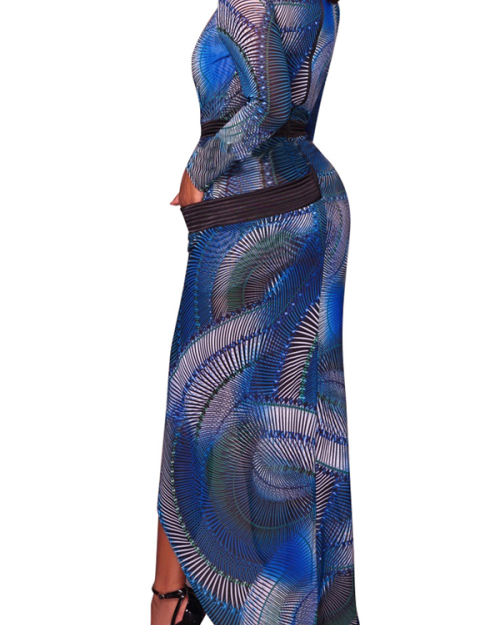 Euramerican Printed Asymmetrical Blue Healthy Fabric Sheath Ankle Length Dress