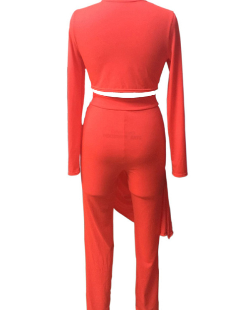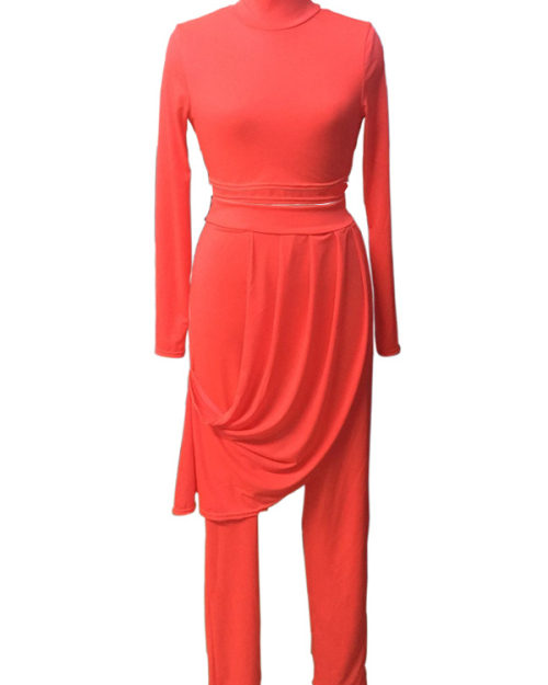 Euramerican Round Neck Asymmetrical Red Milk Fiber Two-piece Pants Set