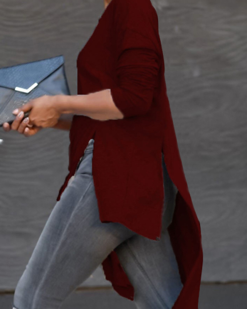 Euramerican Round Neck Asymmetrical Wine Red Velvet T-shirt