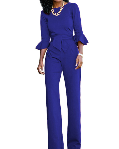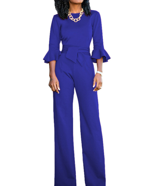 Euramerican Round Neck Half Sleeves Blue Knitting One-piece Jumpsuits (Without Necklace)