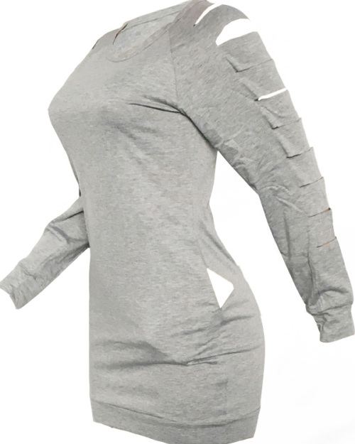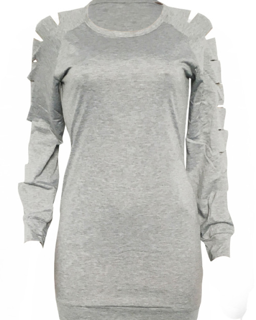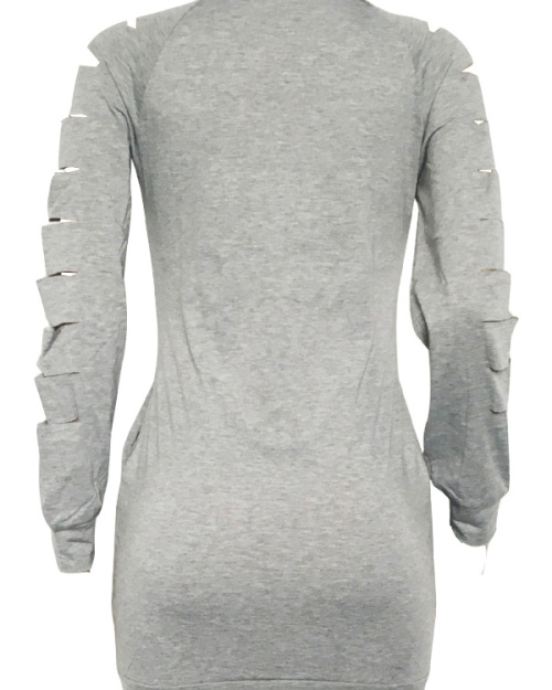Euramerican Round Neck Long Sleeves Hollow-out Grey Polyester Sheath Mini Dress