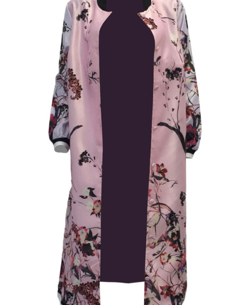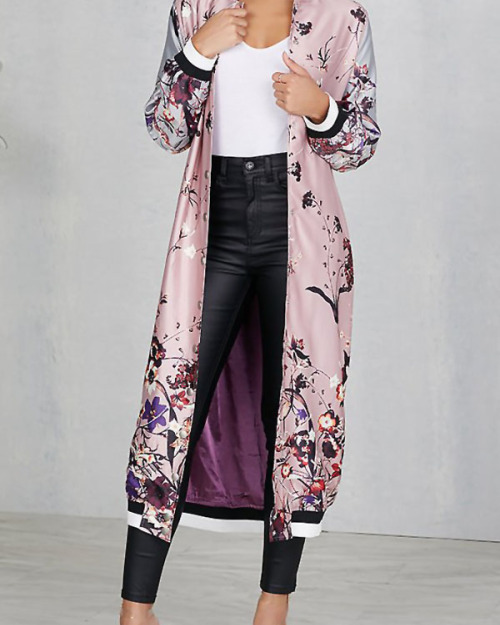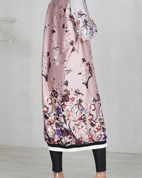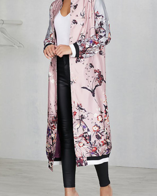 Euramerican Round Neck Printed Pink Polyester Trench Coats
