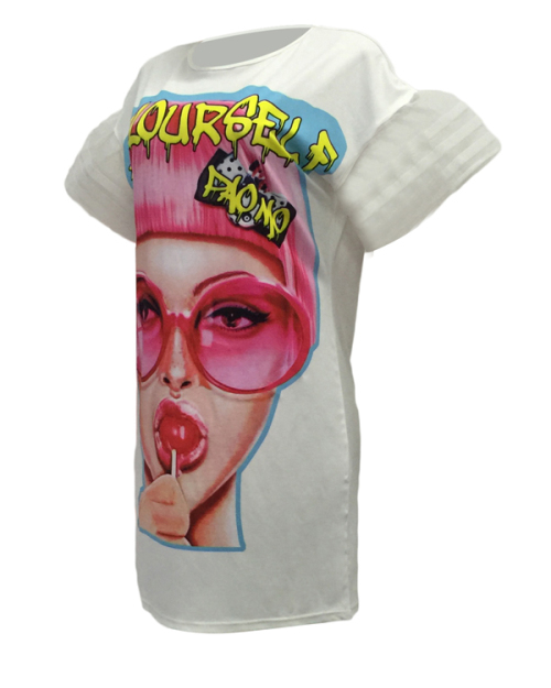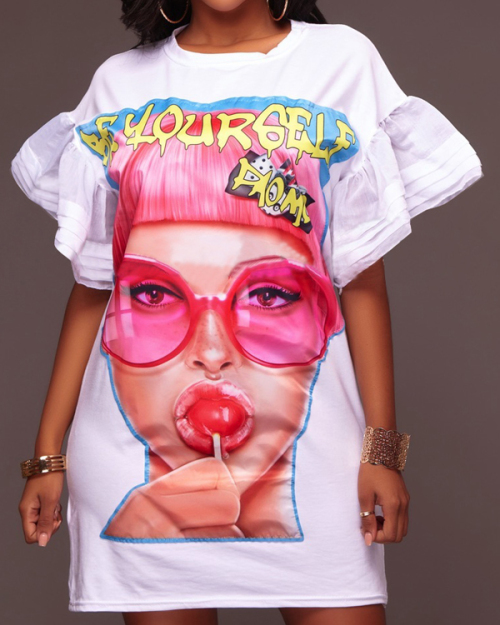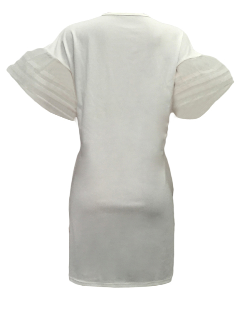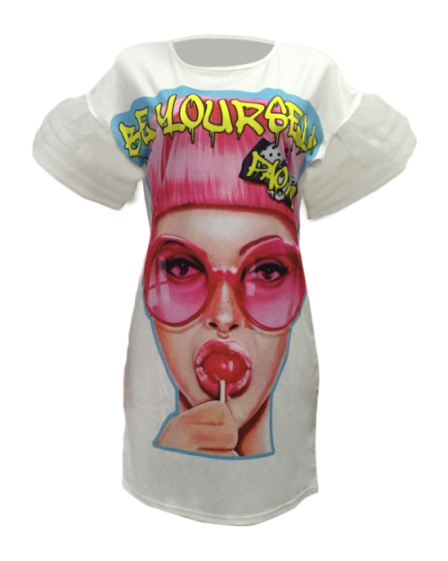 Euramerican Round Neck Printed White Polyester Mini Dress