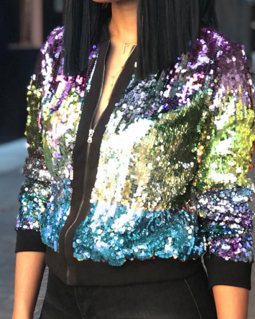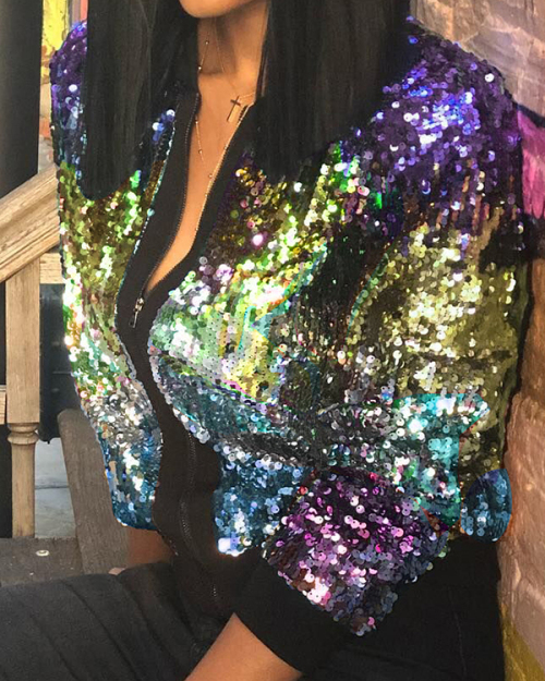 Euramerican Round Neck Sequined Decorative Polyester Jacket
