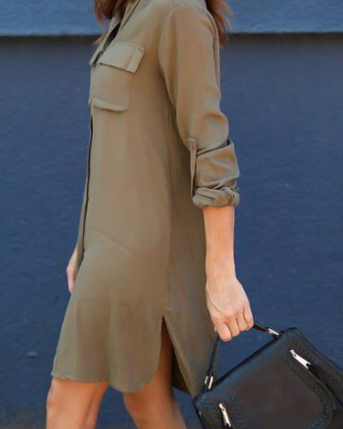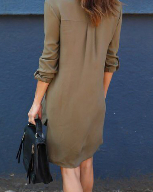 Euramerican Single-breasted Design Army Green Polyester Knee Length Dress