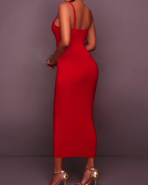 Euramerican Sleeveless Red Cotton Blend Sheath Mid Calf Dress