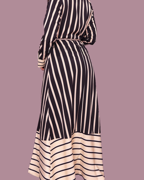 Euramerican Turndown Collar Striped Patchwork Black Cotton Blends Coat