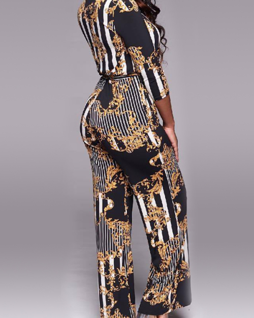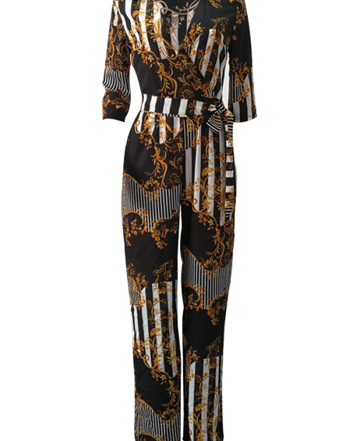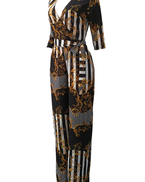 Euramerican V Neck Printed Polyester One-piece Jumpsuits