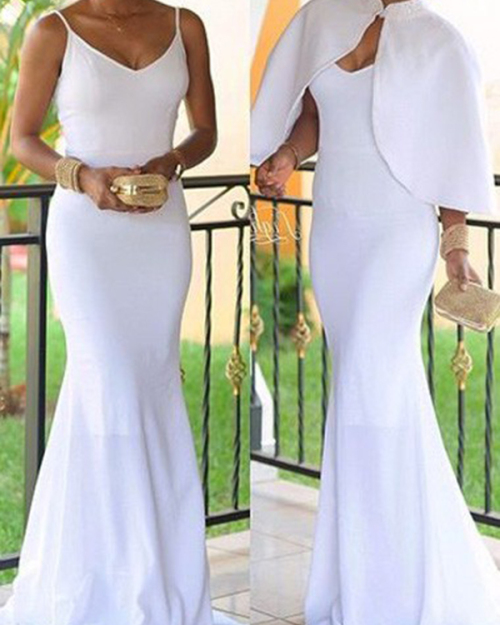 Euramerican V Neck White Modal Ankle Length Dress(With Coat)