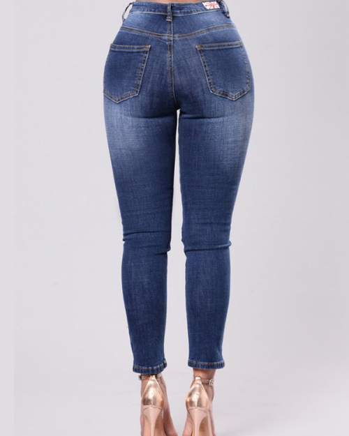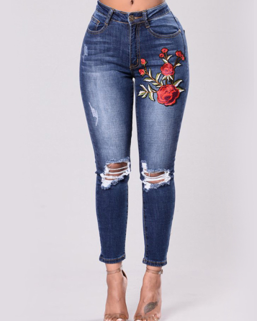 Fashion High Waist Embroidered Design Denim Pants