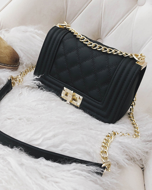 Fashion Rhombus Grid Design Black PU Crossbody Bag