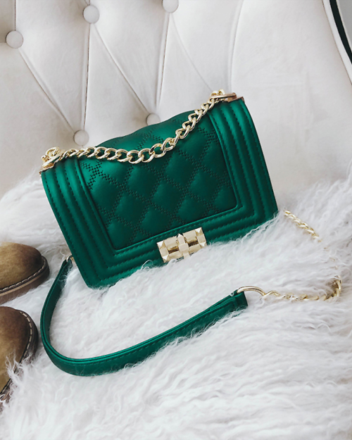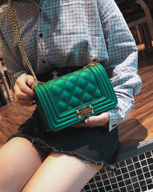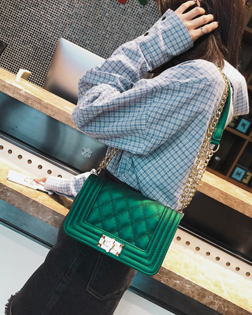 Fashion Rhombus Grid Design Green leather Crossbody Bag