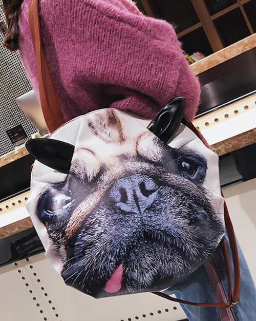 Fashion Zipper Design Printed Khaki PU Crossbody Bag