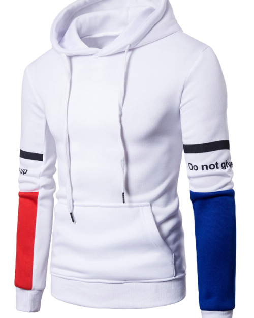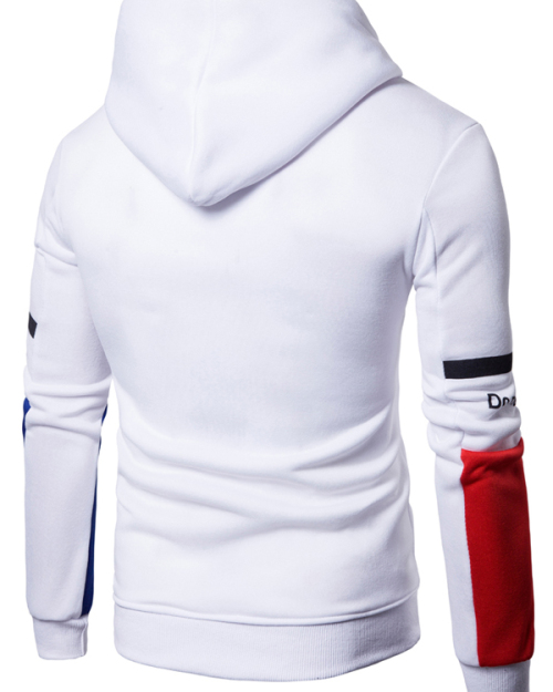 Fashionable Hooded Collar Patchwork White Cotton Blends Hoodies