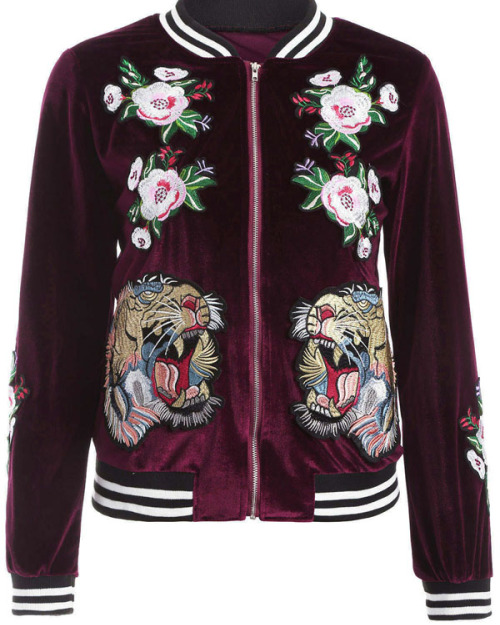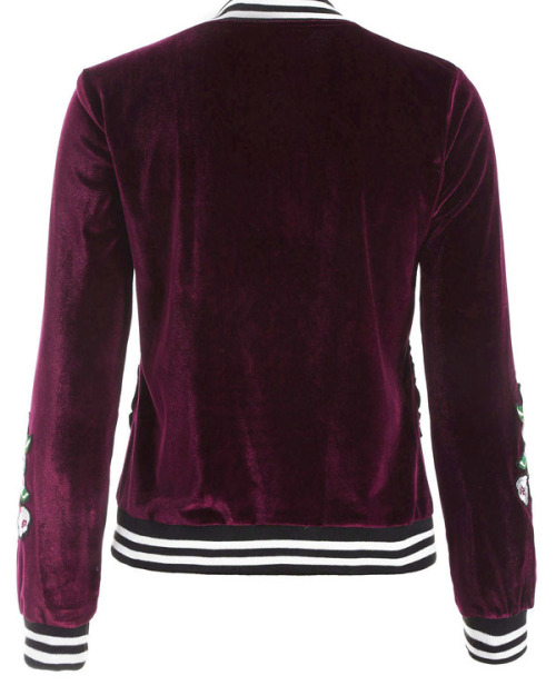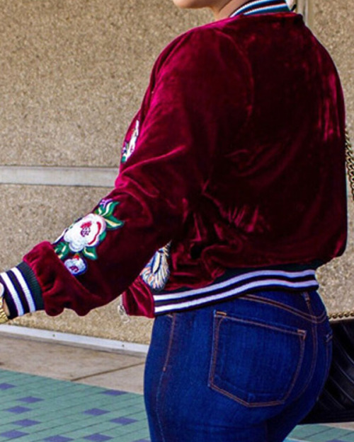 Fashionable Round Neck Embroidered Design Wine Red Velvet Coat