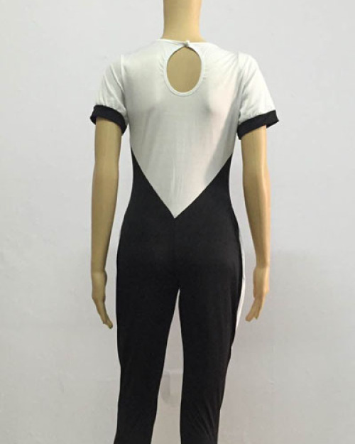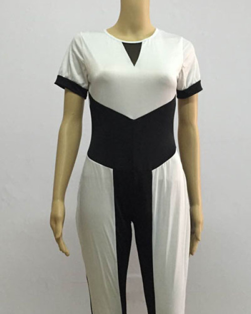 Casual Short Sleeves Collar Mesh Patchwork Spandex Regular Jumpsuit