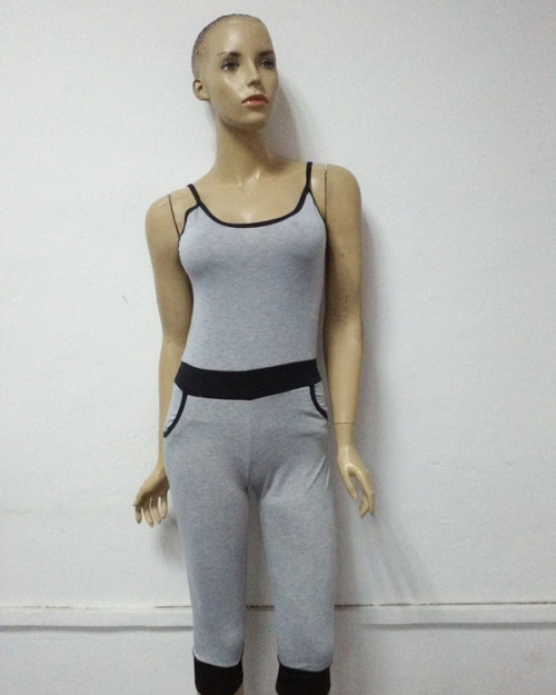 Casual Sleeveless Backless Patchwork Grey Blending One-piece Regular Jumpsuit