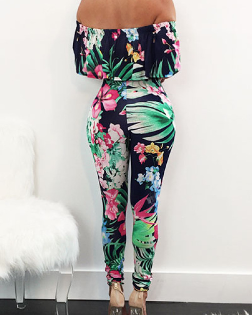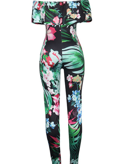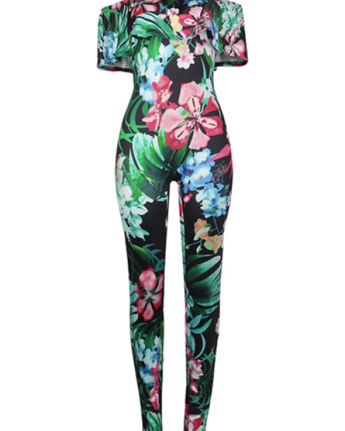 Charming Bateau Neck Short Sleeves Floral Print Qmilch One-piece Skinny Jumpsuits