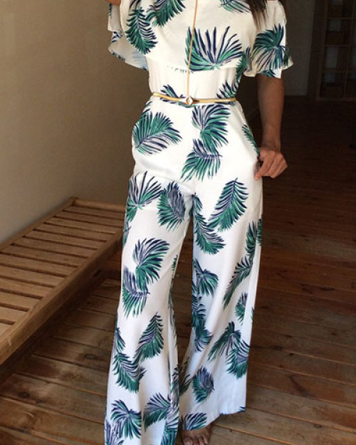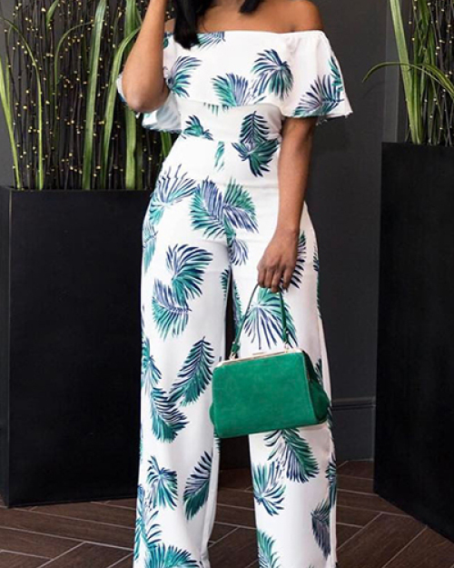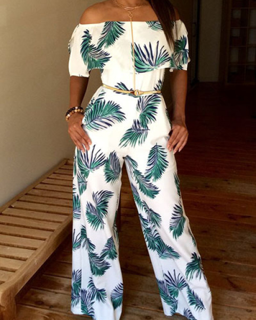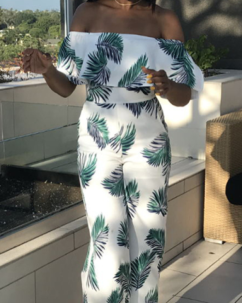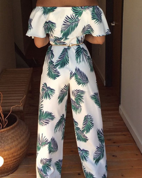 Charming Dew Shoulder Print White Milk Silk One-piece Jumpsuits(Without Accessories)