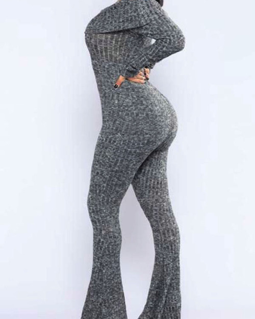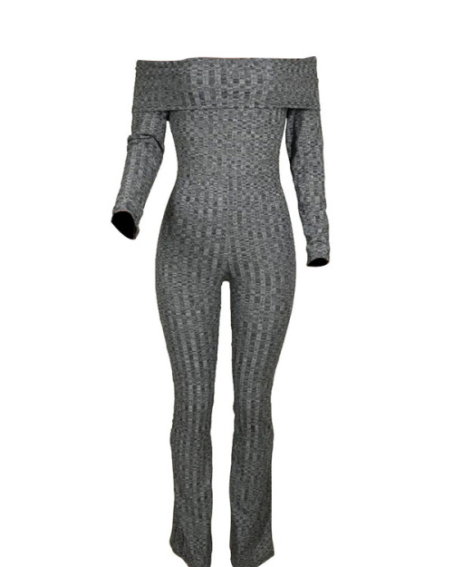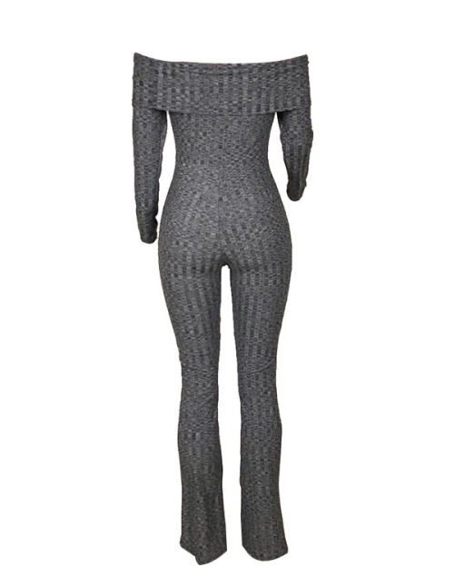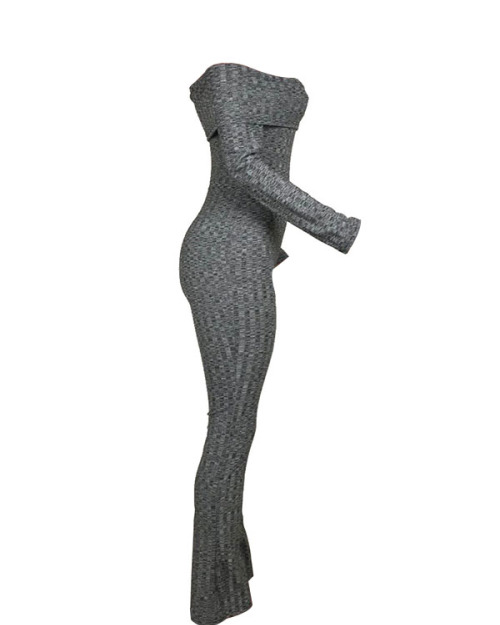 Euramerican Bateau Neck Trumpet Design Grey Cotton Blends One-piece Jumpsuits
